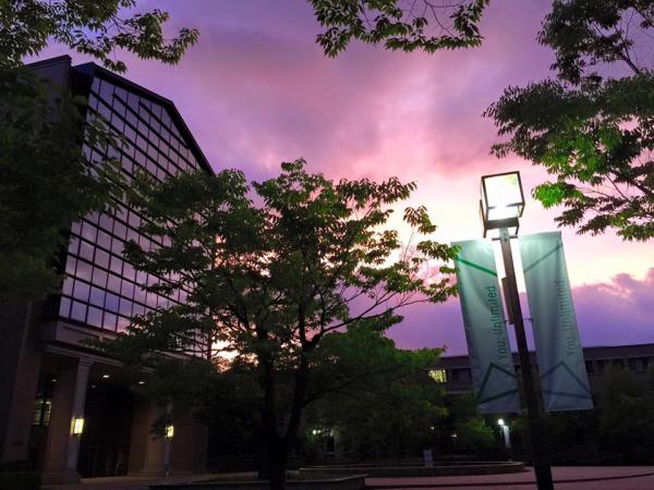 ▪︎ということで、昨日は土曜日でしたが、仕事をしに研究室に向かいました。晩は、帰省する息子をまじえて外食をする約束になっていたので、19時半前に研究室を出て瀬田キャンパスのバス停に向かいました。研究室のある2号館を出ると、外は、この写真のような美しい夕暮れになっていました。19時半頃でも、まだこの明るさがありました。夏至を過ぎたばかりですからね。この夕暮れですし、土曜日で誰もいませんから、辺りにはちょっと幻想的な雰囲気が漂っていました。昨日は、全国的にも美しい夕暮れを観察することができたようですね。皆さんは、夕暮れの美しさに気付かれましたか?この写真は、「iPhone6 plus」で撮りました。手軽な「道具」ですが、それなりに満足のいく写真を撮ることができます。