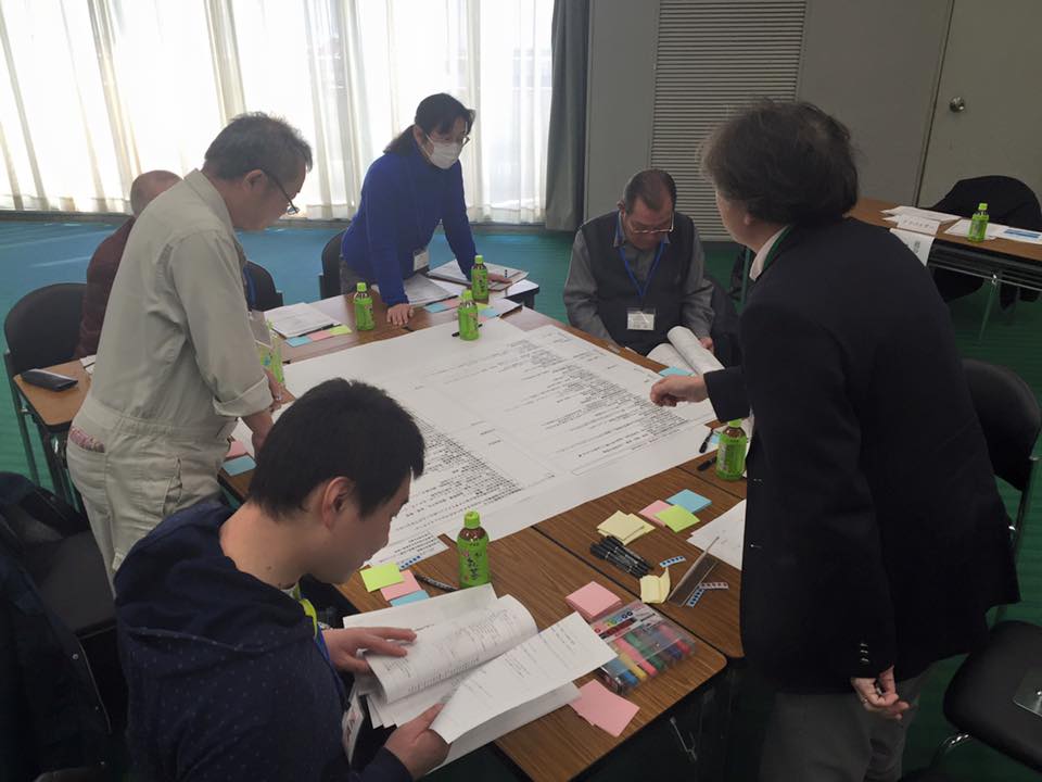 ■とはいえ、皆さん、実に積極的に話し合っておられました。ある班では、「こういう問題は、短い時間だけでは話しが終わらない。酒でも飲みながら、朝まで語り合わないと」という意見が出ていました。素敵ですね〜。また、ワークショップが終了した後、こういうことを継続してやるべきだとの意見も出ていました。このような意欲を持たれていることも、とても素敵なことです。