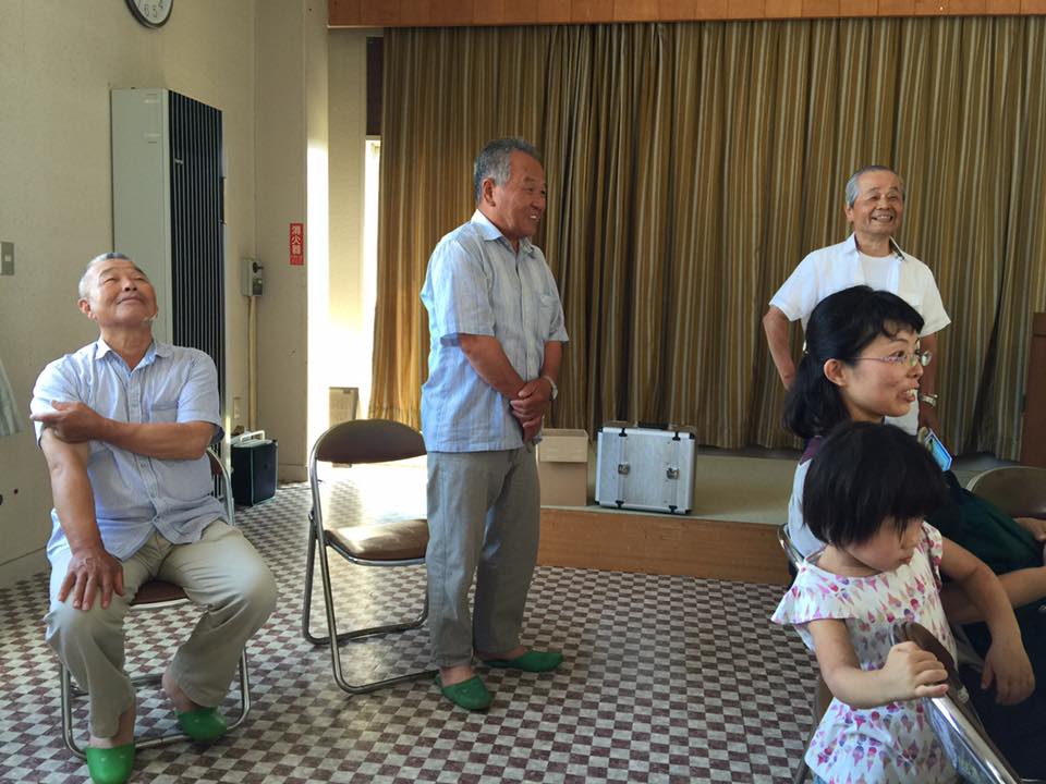【写真】上段左:左から西居沖島自治会長と奥村沖島漁業組合組合長、そして西岡さん。上段右:俳句が趣味の西岡さんが、ご自身の作品をご披露されました。「淡海の宝石たらんあめのうお」。下段左:世界農業遺産申請チームのリーダー青田朋恵さん。私もアドバイザーとして世界農業遺産申請に取り組んでいます。下段右:滋賀県農政水産部部長の高橋滝治郎さん。10月の「びわ100」にも参加されます。青田さんと高橋さんの写真の赤ちゃんは、このイベントに参加された方のお子さんです。