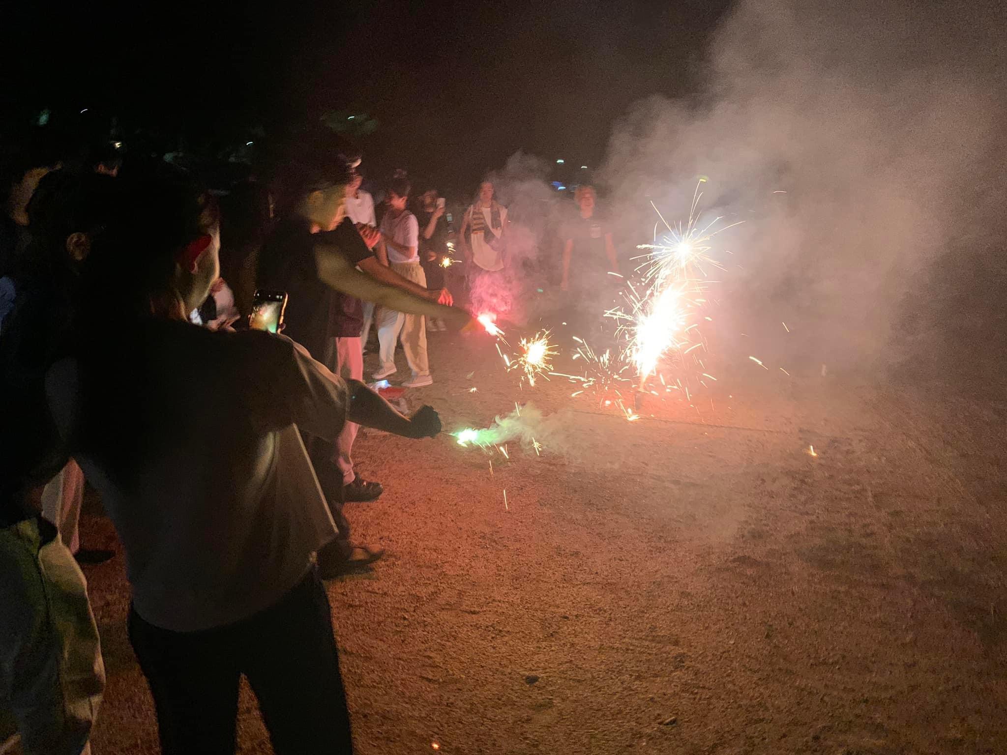 ▪️合宿は本日の午前中までということで、昨日の夕食はBBQでした。そのあとは、花火大会です。盛り上がっていますね。現在の部員の皆さん、コロナ禍のために 、1回生から4回生まで、全員が合宿の経験がないのです。これ、初めての合宿なんです。楽しそうでしょう‼︎ やっと、以前の学生さんであれば当たり前のようにやっていた経験を、やっとすることができたわけです。本当に良かったと思います。こうやって多くの部員が楽しんでいる間にも、コツコツと練習をしている部員さんがおられました。一生懸命マリンバの練習をされていました。指導してくださる先生から宿題が出ているそうです。同じ楽器の部員の皆さんの演奏レベルが高いので、自分も頑張らなければならない、そう言っておられました。素敵ですね。素敵だと思います。