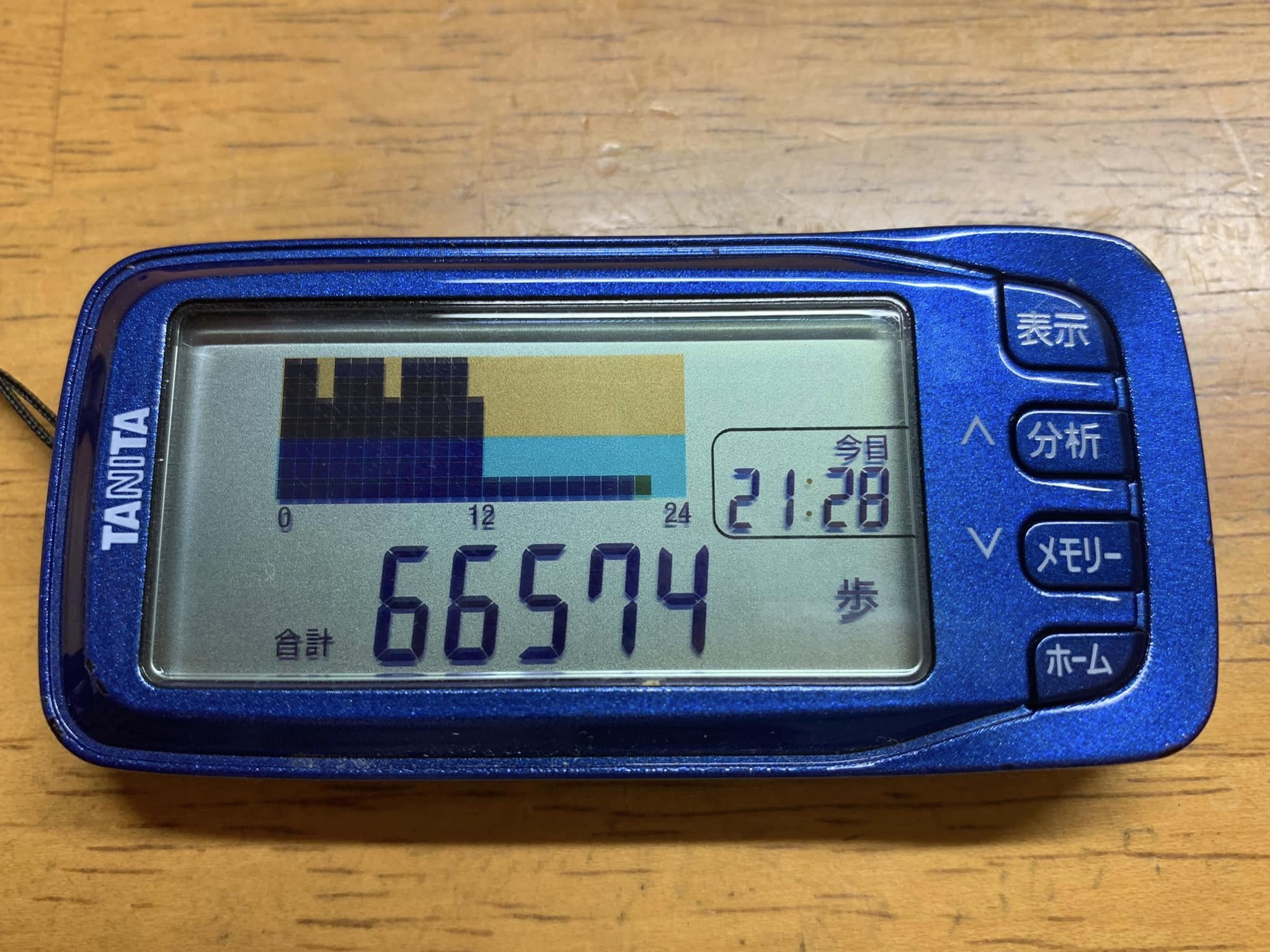 ▪️ウォーキングの経過についても書きたいのですが、まずは結果からにします。これ、万歩計です。14日の歩数が、95,286歩。もちろん、自宅から「びわ100」のスタート地点(長浜市)まで移動した際の歩数も入っています。15日の歩数が66,574歩。昼前にゴールにしてすぐに自宅に帰宅し万歩計を外しました。だから、少しだけ「びわ100」以外の歩数も入っています。帰宅後は、洗濯だけは済ませ、缶ビールを飲んで眠ってしまいました。徹夜で歩きましたから。2日合わせた歩数は161,863歩になります。ちなみに、黒い壁の中で凹んでいるところがありますが、これはチェックポイントで休憩していためです。第1チェックポイントは、短い時間しか休憩しなかったので、凹みになっていませんね。しかし第2~第4チェックポイントでは、30分ほどゆっくり休憩をしたので、凹んでいるのです。