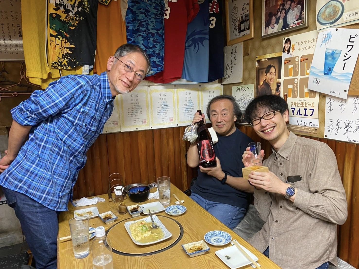 ▪️昨日は、大津駅前のいつもの居酒屋「利やん」で、龍谷大学吹奏楽部の若林義人監督と日景貴文コーチとの呑み会でした。今週末は、全日本吹奏楽コンクールが新潟で開催されますが、その壮行会のような感じの呑み会でした。昨日は、西浅井漁協に注文してあったビワマスをメインに楽しみました。ビワマスは、今年の春からコーチに就任された日景先生のリクエストです。ビワマスは琵琶湖の固有種です。琵琶湖にしか生息しません。近縁種にサクラマスという魚がいて、両方ともサケ科の魚ですが、ビワマスは琵琶湖に閉じ込められたので、サクラマスのように海には下りません。琵琶湖の深い冷たいところを回遊しています。産卵のときに、周囲の河川に遡上してきます。まあ、そのような話はどうでもよいですかね。ビワマスのシーズンはすでに終わっていますが、丁寧に冷凍保存してあったものをいただきました。刺身、炙り、にんにくバター醤油炒め、どれもとても美味しくいただきました。女将さん、料理担当のみちるさん、ありがとうございました。昨日は驚くこともありました。突然、フィリピンの「流し」のお姉さんたちがお店に入ってこられたのです。長年「利やん」に通っていますが、こんなことは初めて。びっくりしました〜。