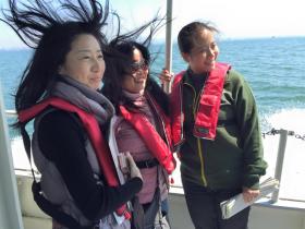 ▪︎26日の総合地球環境学研究所でのオリエンテーションを兼ねたキックオフミーティングの後、第1日目の27日には、まずは琵琶湖疎水を見学したのち、大津市の比叡山延暦寺の門前町・坂本にある「鶴喜蕎麦」で蕎麦を楽しみました。蕎麦の昼食のあと、京都大学生態学研究センターの調査船「はす」に乗せていただき、野洲川の河口や流域下水道の処理施設のある矢橋の帰帆島をめぐりました。調査船からの見学には、生態学研究センター長の中野さんも一緒に同行してくださいました。センター長としてご多忙なわけですが、調査船に乗船することについては、ご同行くださいました。ありがとうございました。