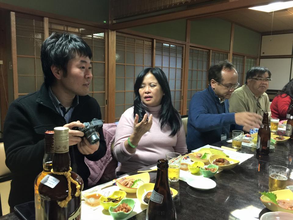 ▪︎写真は、南山大学の篭橋さん(4月からは京都大学に異動されます)と、フィリピンの「Laguna Lake Development Authority」のAdeline Santos BROJAさんです。急遽、湖魚料理を楽しみながら、プロジェクトの人間社会班の研究内容に関する議論が始まりました。英会話の不得手な私にかわって、篭橋さんが懸命に通訳をしてくださいました。ありがとうございました。今回は、人間社会班からこの国際ワークショップに参加したのは、篭橋さん(環境経済学)、金沢大学の大野さん(環境政策論)、秋田県立大学の谷口さん(社会学)、そして島根県から来られた平塚さん(フリーの環境コンサルタント)、4名方達と私です。皆さんとは、食事のとき、食事のあとの酒の時間、バスによる移動の時間…様々な空き時間に、非常に有益なディスカッションをすることができました。