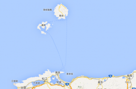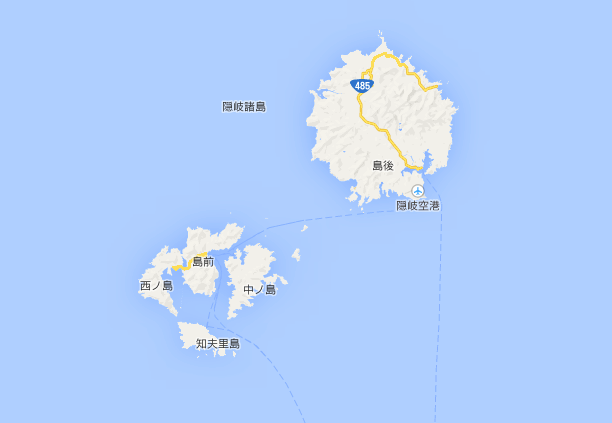 ■隠岐諸島は「島前」と「島後」にわかれます。これは、「どうぜん」と「どうご」と読みます。「島前」の方は「知夫里島(知夫村)」、「中ノ島(海士町)」、「西ノ島(西ノ島町)」からなり、3つあわせて「島前三島」と呼ばれています。一方、「島後」の方は「島後(隠岐の島町)」のひとつだけです。そのことが、この写真からよくわかりますね。
