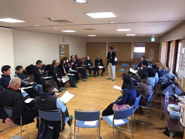 ■それぞれ得意とする自分たちの能力を活かしつつ、お互いに横につながることのなかで、地域の課題を解決していく…そのような方向性がお互いに確認できたのではないかと思います。地域の課題は、単独で存在しているわけではありません。複数の課題が相互にかかわりながら、構造化された問題群として存在しているのです。それらの問題群の解決のためには、様々な能力をもった方たちが、横に「つながり」をもちながら連携していくことが必要です。そうすると、「1+1=3」の相乗効果が生まれてきます。付知地区の皆さんは、まちづくり協議会のもとで活動しているせいでしょうか、お互いについてはそれなりにご存知でした。しかしながら、それでもあらためて「交流会」でお話しをうかがうと、お互いに初めて聞く類いの話しがたくさんあったようです。横の「つながり」をつくる「場」の必要性を感じていただけたのではないかと思います。これからも、両地区に通いながら、皆さんの「つながり」作りを応援できればと考えています(トップの写真は、付知での交流会の様子をパノラマで撮ったものです)。