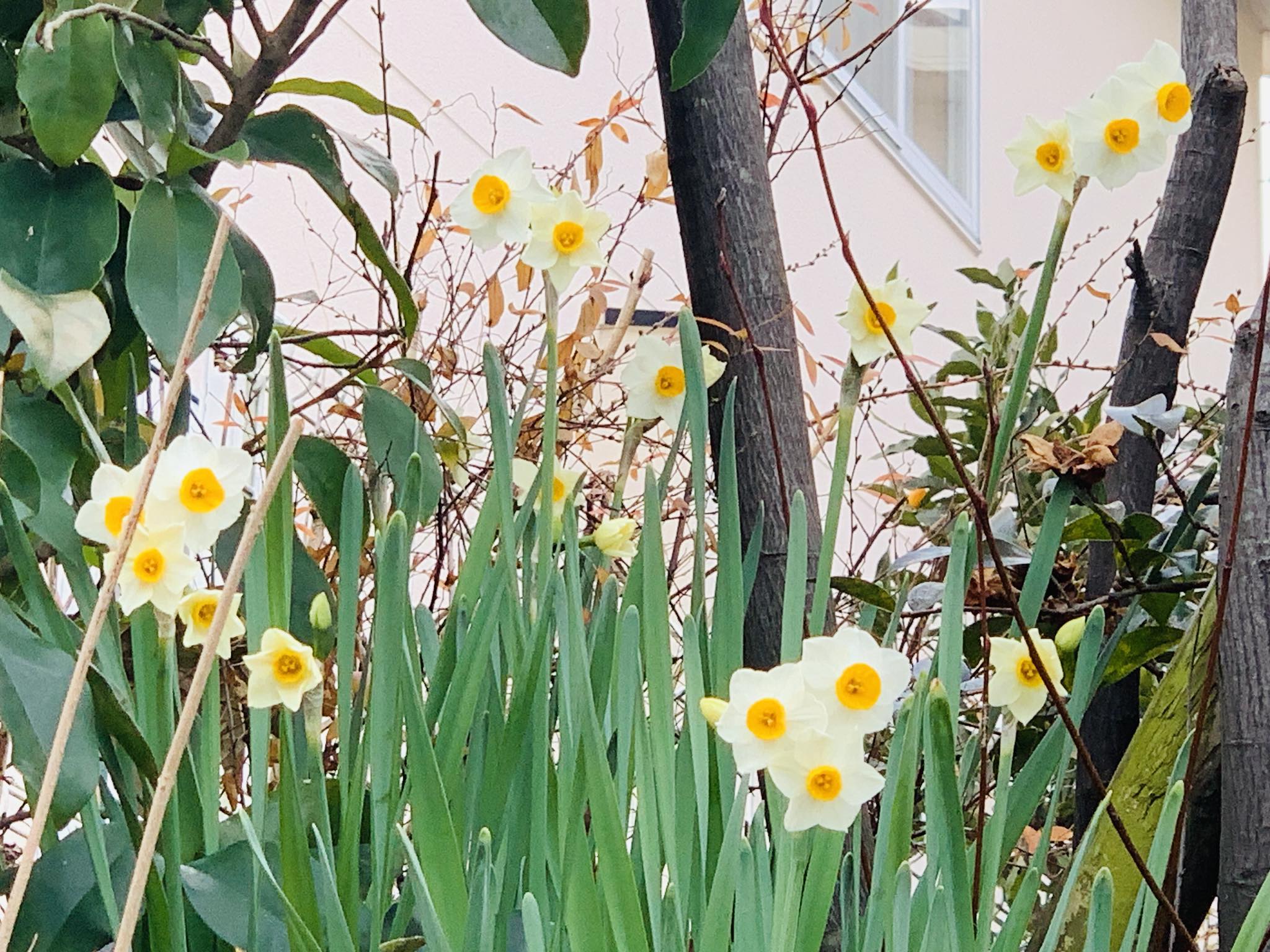 ▪️うちの小さな庭には4ヶ所にスイセンが植えてあります。花が咲く前までの時期、それから花が終わった時期に肥料を与えないと、きちんと咲いてくれないらしいですね。その施肥がきちんとできていなかったので、昨年は、ほとんど咲いてくれませんでした。でも、どういうわけか、今年も施肥ができていないのに、この程度には花を咲かせてくれています。ありがとう。今の世界は、海外も国内もがっかりする出来事か多いので、庭の花を眺めると心がやすまります。開花が終わったら、きちんと施肥しますね。ところで、比良山頂のスキー場、春には斜面の黄色のスイセンが満開になるのですが、あれもきちんと施肥されているんでしょうかね。他にも淡路島とか福井県にもスイセンが有名なところがありましたね。きっときちんとお世話されているんでしょうね。大変な作業ですね。