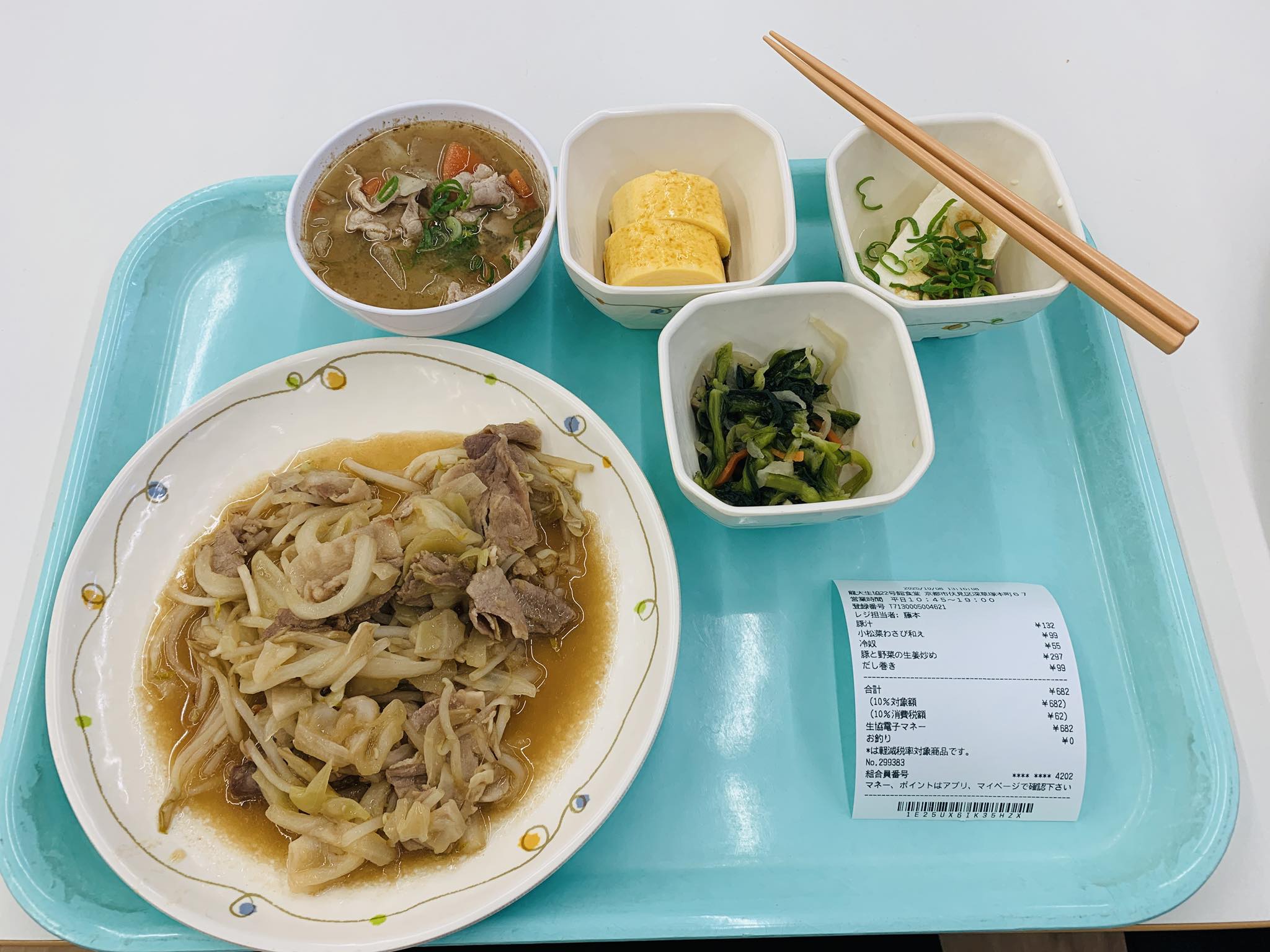▪️さて、写真ですが、本文とはな〜んにも関係ありません。昨日、朝、弁当を作ることができなかったので、大学生協の学生食堂で、自分の昼食を撮ったものです。大皿が豚と野菜の生姜炒め。あとは、小松菜わさび和え、だし巻き、冷奴、豚汁。ご存知の通り糖尿病なので、糖質制限をしています。これで682円。ご飯を食べないので、お腹にドンとくることはないのですが、それでも昼からも働くことができます。野菜、タンパク質、脂質はしっかり摂っています。これだと、夕方前にお腹が減ってしまうのですが、それは仕方がありませんね。
