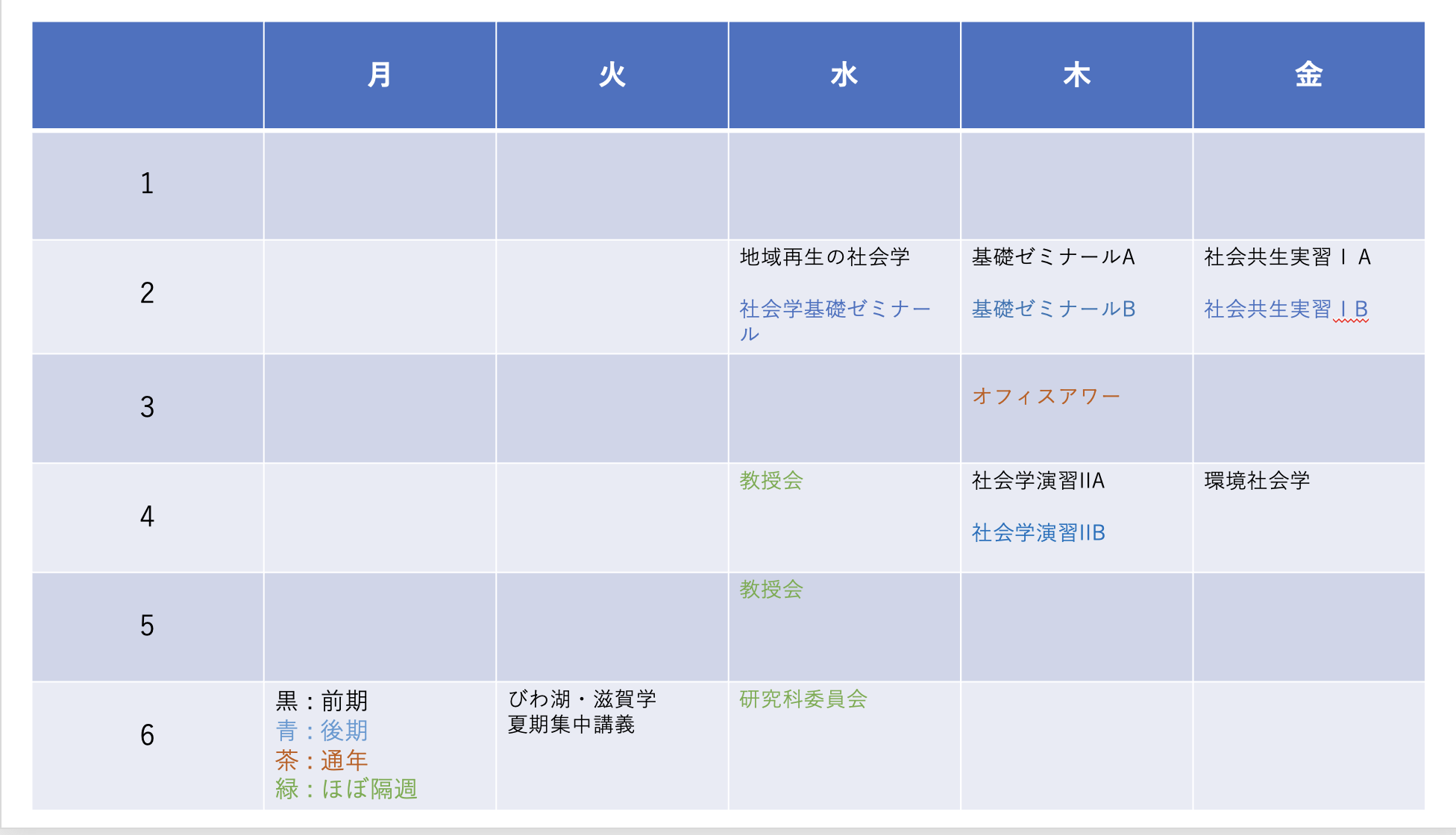 ▪️来年度の時間割が決まりした。来年度は、大学教員最後の年度になります。今年度は、週の間に授業が拡散していましたが、来年度は適度に集まって教員の立場からは合理的な時間割になりそうです。コマの多い教員のヘルプにも入ります。ということで、「環境社会学」も担当します。後期は演習と実習だけになりますが、必修の演習を再履修される方達のためのクラスも担当することになりそうです。でも、まだ最終決定ではないので、多少の変更があるかもしれません。また、現在のところ、大学院の授業はまだ記載していません。