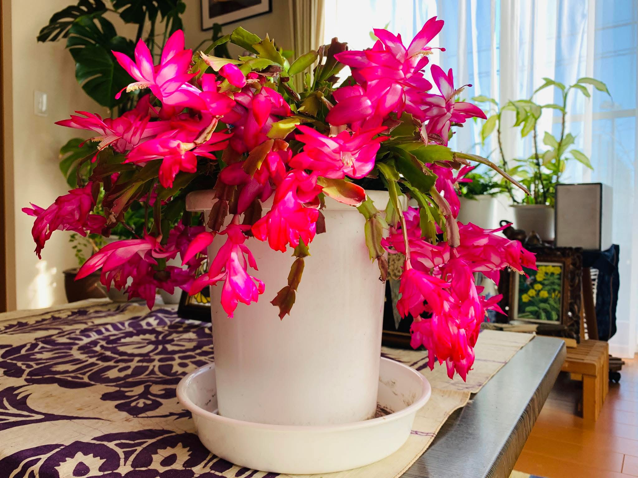 ▪️今年も、シャコバサボテンが花を咲かせてくれました。ありがとう。夏の間は外に出していたのですが、暑さにやられてしまったようで大丈夫かなと心配していましたが、きちんと復活して花を咲かせてくれています。しばらく楽しめそうです。