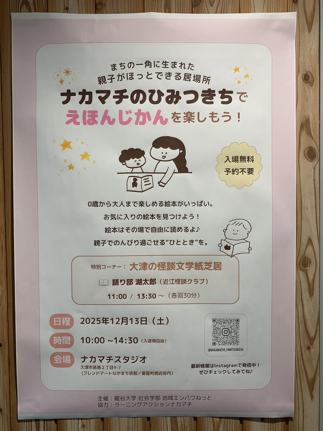 明日、「ナカマチのひみつきちで えほんじかん を楽しもう!」が開催されます。