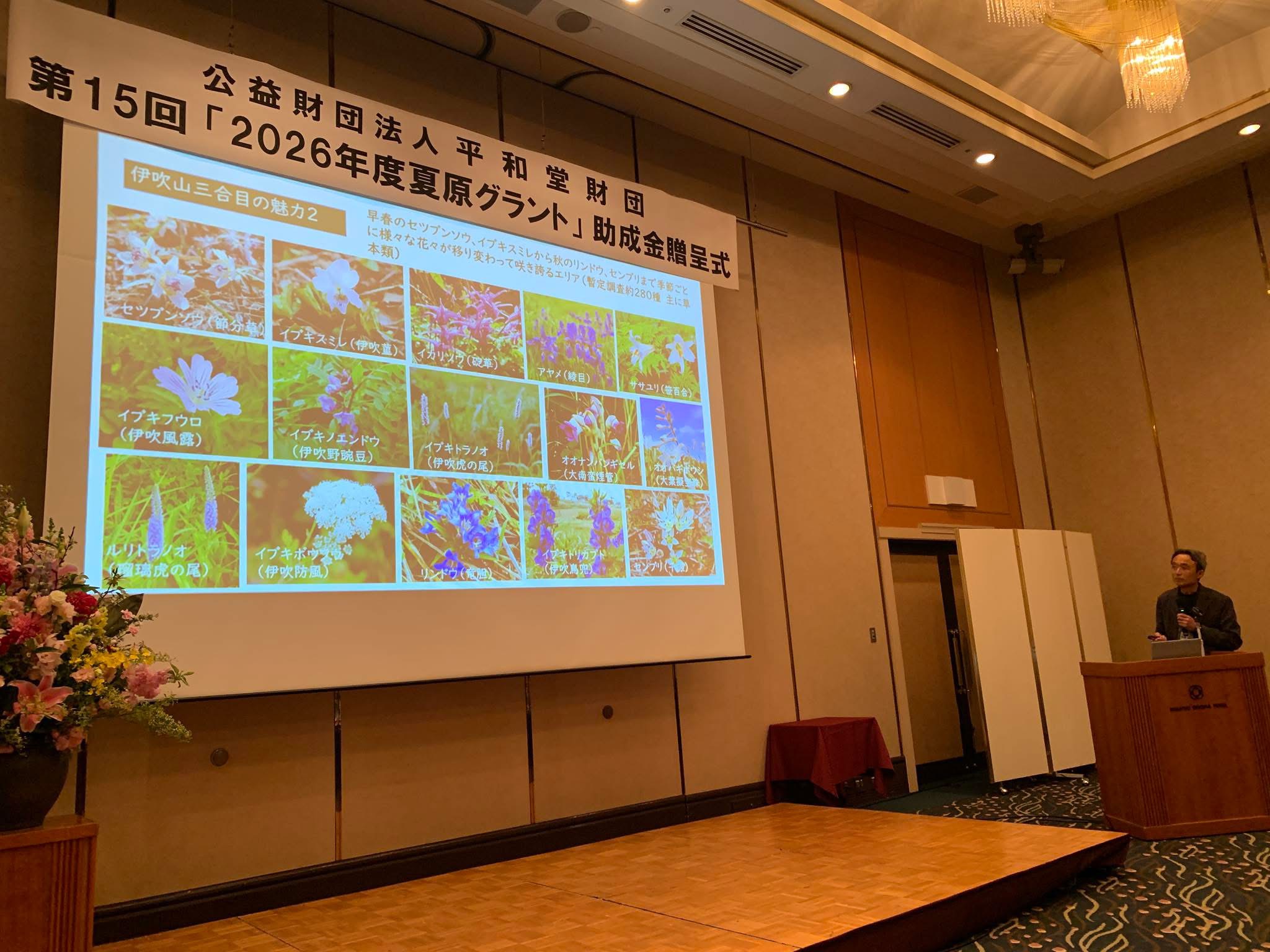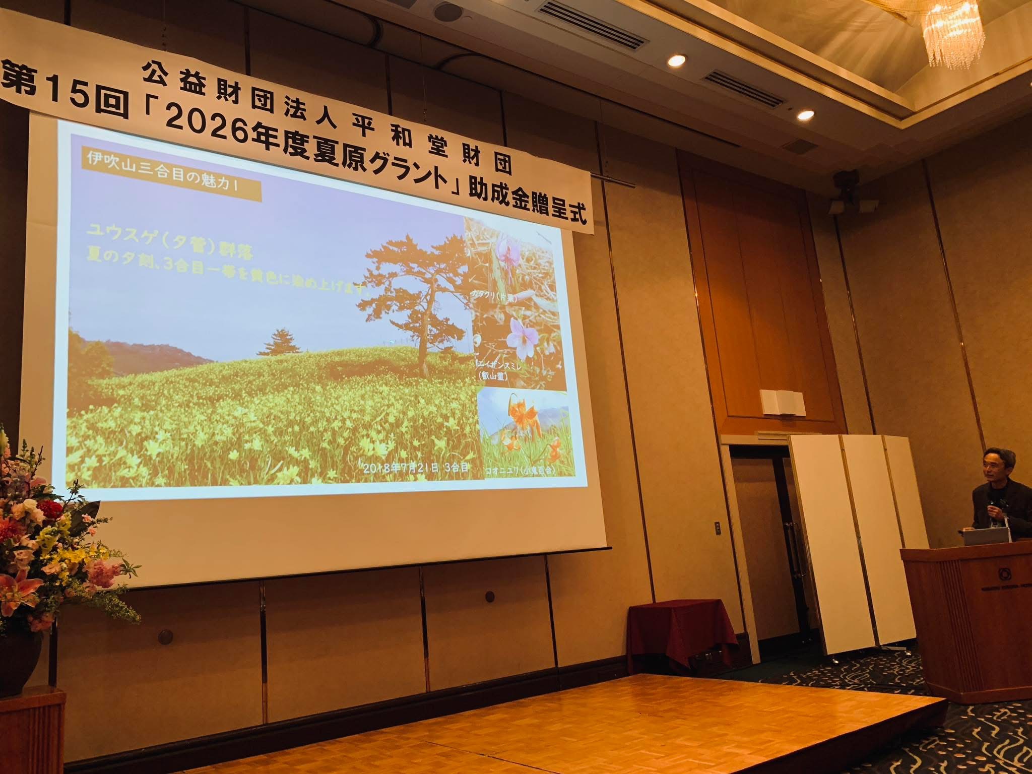 ▪️ 今日は、公益財団法人平和堂財団の第15回「2026年度夏原グラント」助成金贈呈式です。京滋地域で環境保全活動に取り組む団体に助成する仕組みです。この「夏原グラント」では、2014年度から選考委員を務めてきましたが、財団と事務局のご努力で、助成の仕組みは、工夫を積み重ねてきた結果、素晴らしいものになっています。2年間のファーストステップ助成、3年間の一般助成、そしてステップアップと、段階的に活動を発展させていけるようになっています。また、さまざまなテーマで講座を開催したり、団体の質問にも丁寧にお答えになるなど、手厚いサポートされています。