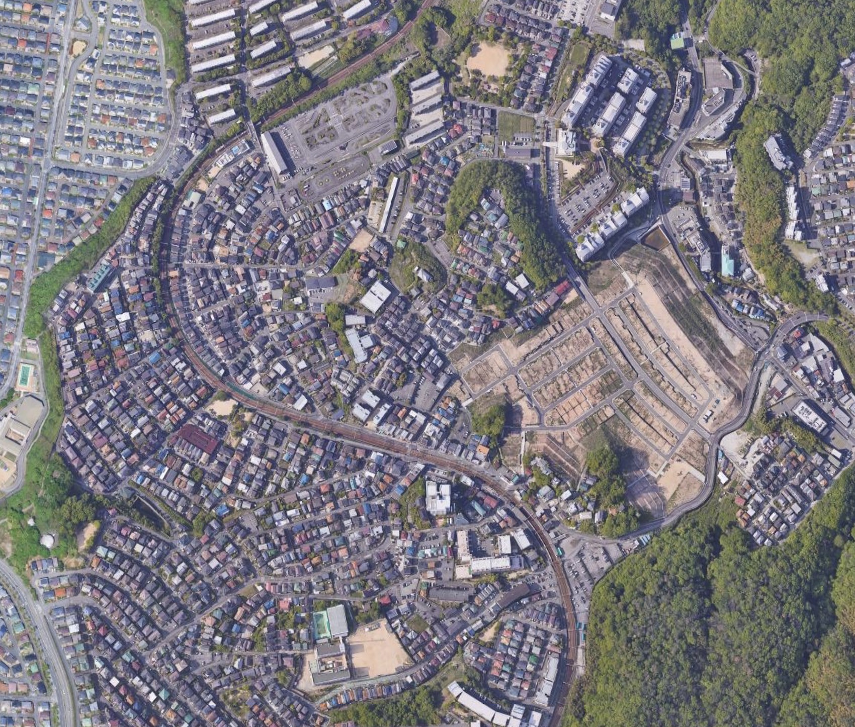 ▪️でも、自分の人生を振り返ってみると、高校生の時に暮らした家のすぐそばにこの急カーブがあり、そのことが「原因」で急カーブ好きになったのかもしれないなと思うようになりました。これは、神戸電鉄の山の街駅や箕谷駅の近くにある急カーブです。画像には2つのカーブがありますね。S字カーブになっていますが、上のほう(北側)の急カーブのすぐそばに住んでいました。電車が走る音も聞こえていたように記憶しています。今から50年ほど前です。当時は、電車そのものには関心がほとんどなかったのですが。
