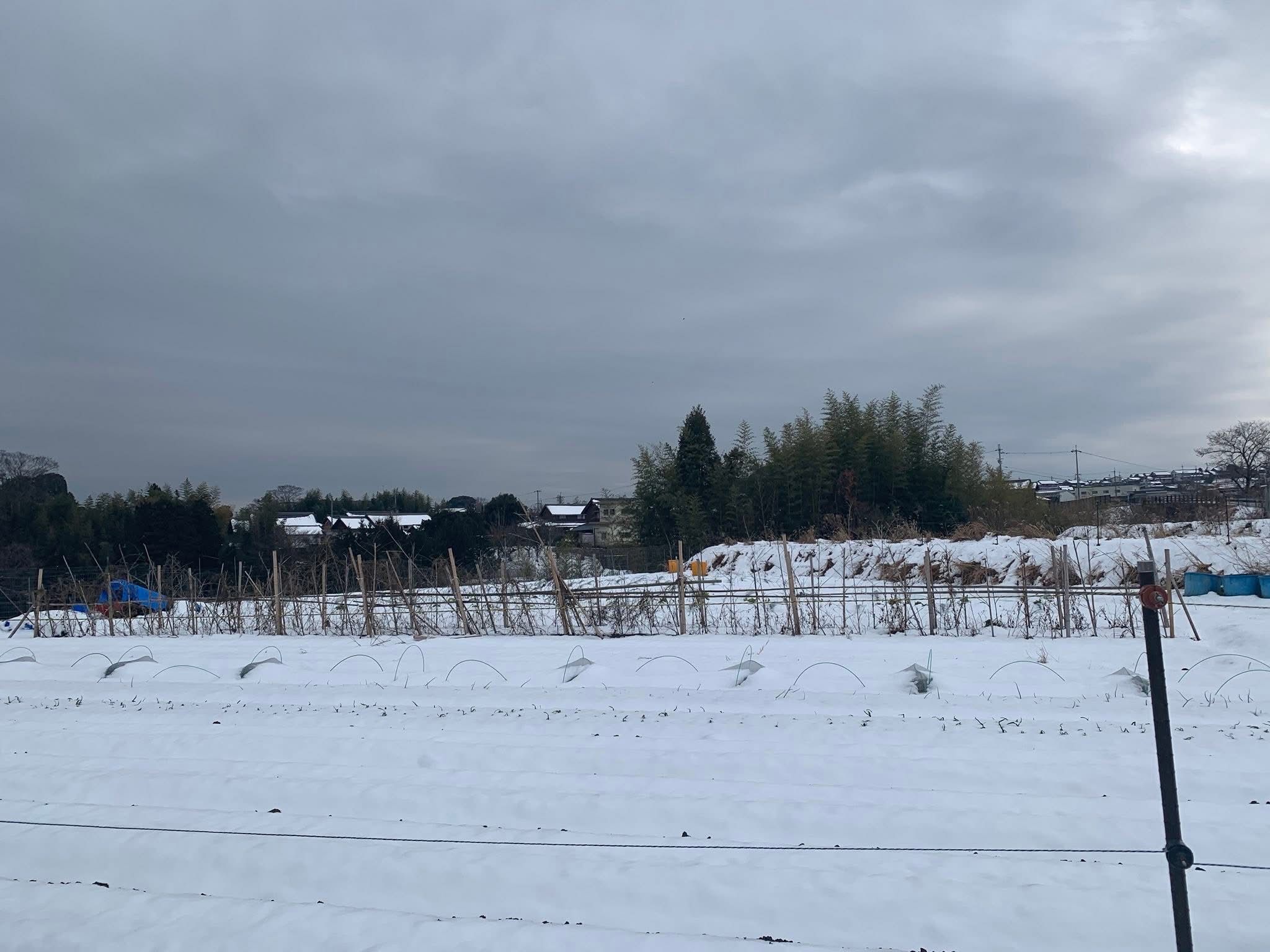 ▪️国内も世界も混沌とした状況にあります。そのような状況の中で、地域の人たちと連帯・連携して、地域の農と食を支え合っていく取り組みに参加できることに幸せを感じています。近々、再生した畑「愛土農場」で農作業があります。次回は、植えたニンニクの苗に追い肥をする作業を行うことになっています。仕事がなければ参加する予定です。今日は、その「愛土農園」の様子を、定例事務局会議の前に見に行ってきました。先日の降雪で雪がまだ積もっていましたが、その雪から、ニンニクの芽が少しだけ頭を出していました。吹き流しと遠くにも見える気象観測装置は、この仰木地域共生協議会に参加・参画している特定非営利活動法人「琵琶故知新」が設置したものです。中山間地域でもある仰木のローカル気象のデータを蓄積して、この地域の営農に役立てていく予定になっています。